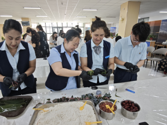 活动伊始,临港中心党委为所有参加活动的职工群众送上了美好的节日祝福,随后,糯米、粽叶、红枣等食材准备就绪,大家围坐在一起,卷粽叶、填糯米、扎丝线,各族群众在欢声笑语中体验包粽子的乐趣,感受传统习俗魅力。活动还设置了五彩绳编制、投壶、问答等环节,在五彩绳手工区域,参与编花绳的人员依据工作人员指导,用色彩斑斓的花绳,编织出端午安康的美好寓意。在投壶挑战区域,现场参与者在“投”与“乐”中感受到了传统文化的多元魅力和游戏本身带来的轻松娱乐氛围,趣味问答游戏将活动氛围推向高潮,各族群众踊跃抢答,在一问一答间加深了对中华传统文化的认知。
