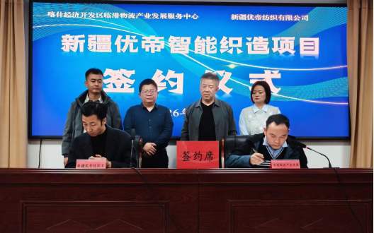 2月9日,在春节来临之际,喀什经济开发区临港片区成功与新疆优帝纺织有限公司正式签约智能织造项目,此次签约是临港片区围绕纺织服装产业定位、聚焦发展外向型产业开展精准招商的重要成果,对片区产业集聚升级、激活内生发展动力具有重要意义。