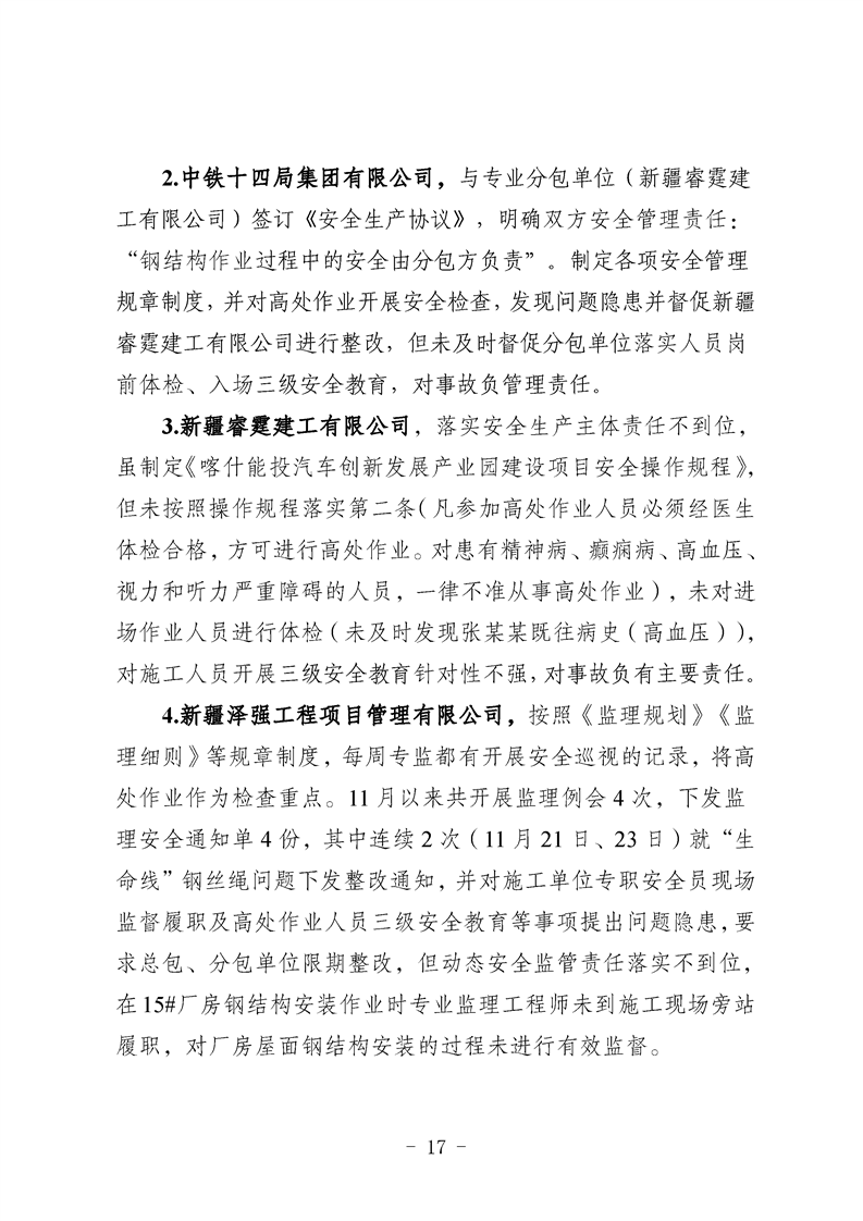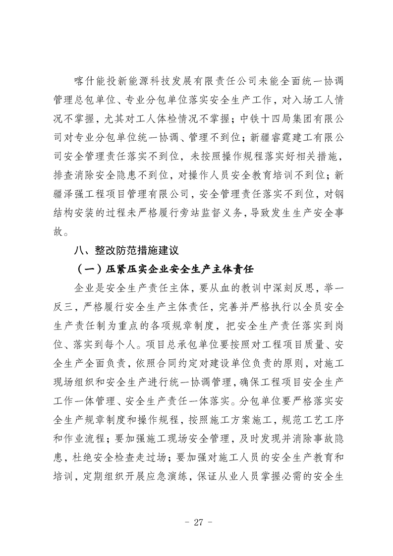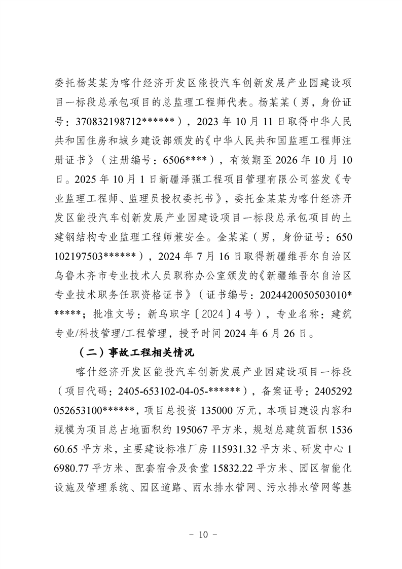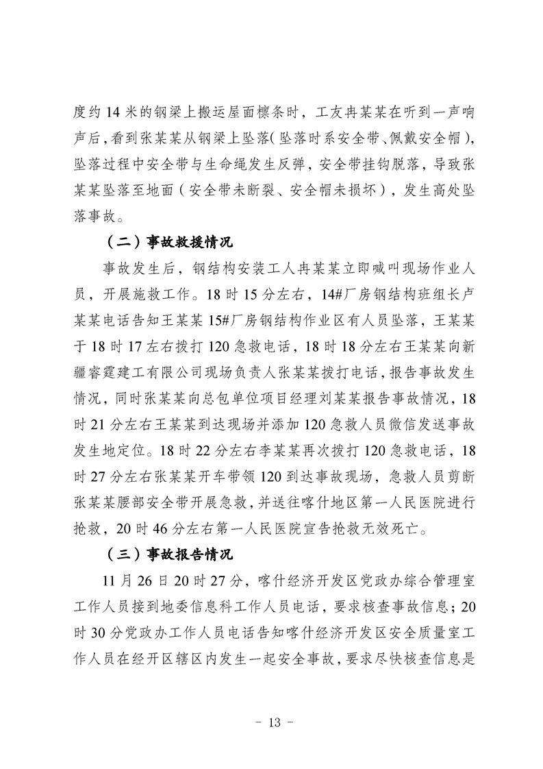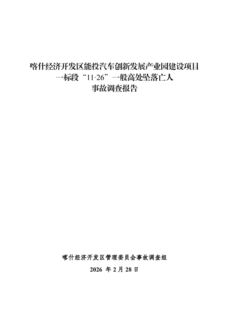 喀什经济开发区能投汽车创新发展产业园建设项目一标段“11·26”一般高处坠落亡人事故调查报告