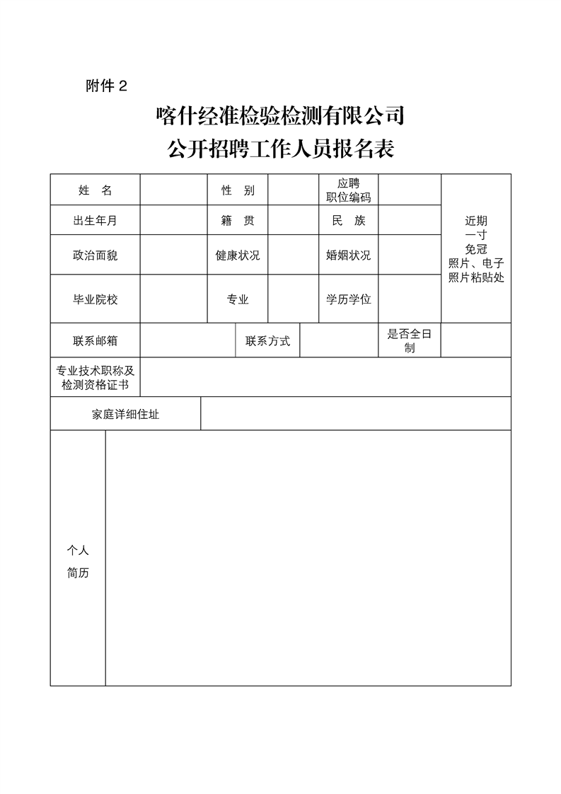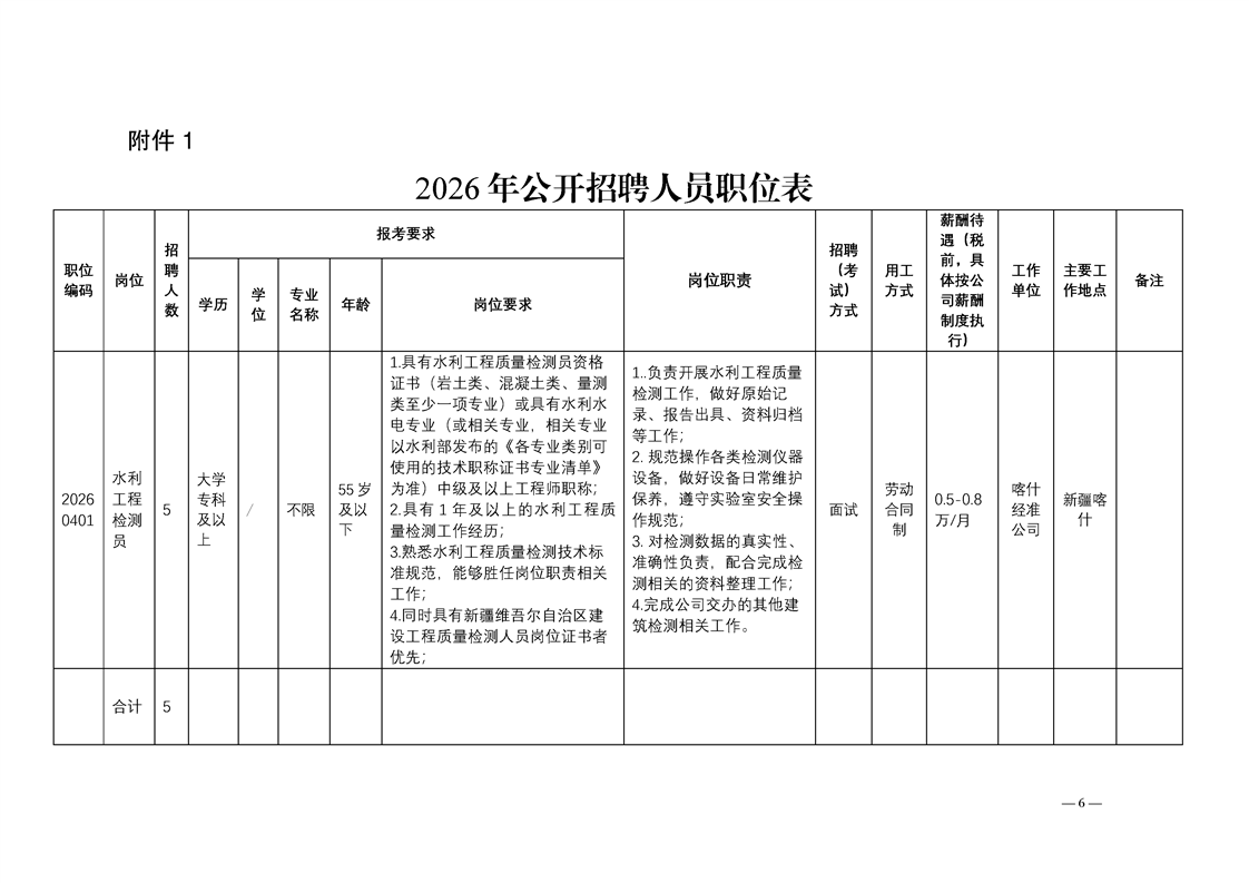喀什经准检验检测有限公司2026年(第二次)公开招聘公告