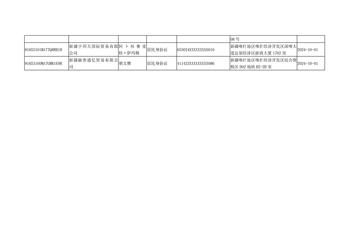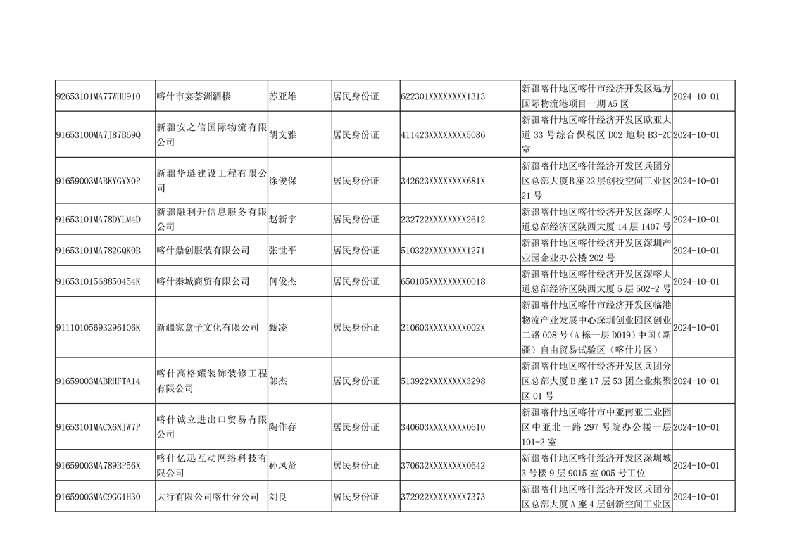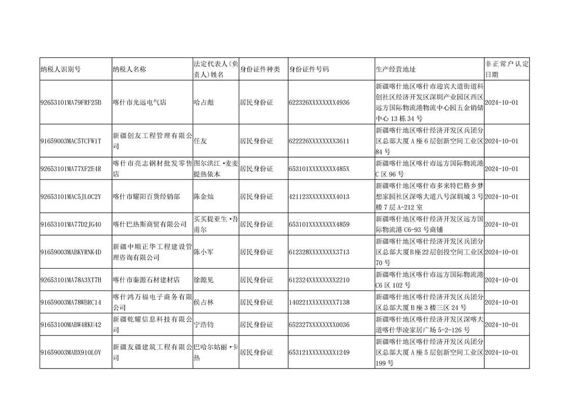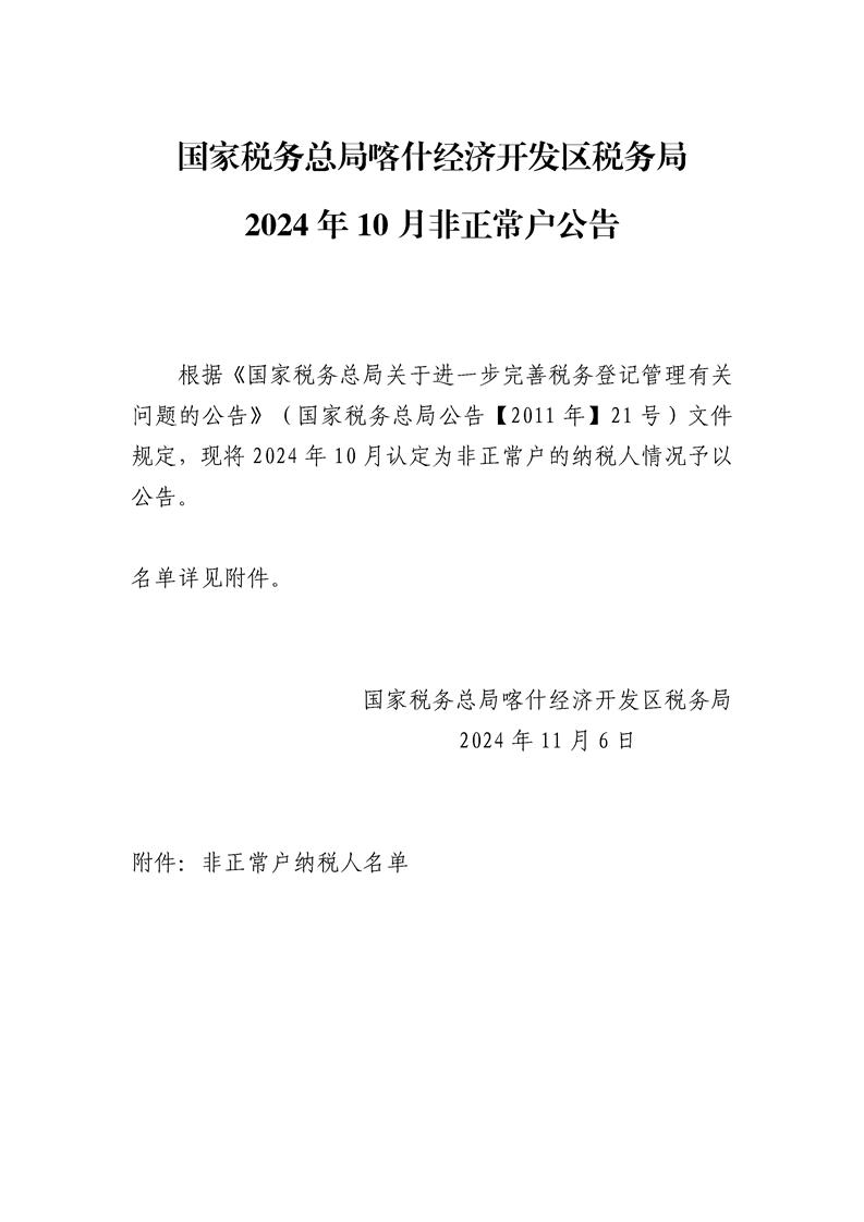 国家税务总局喀什经济开发区税务局2024年10月非正常户公告