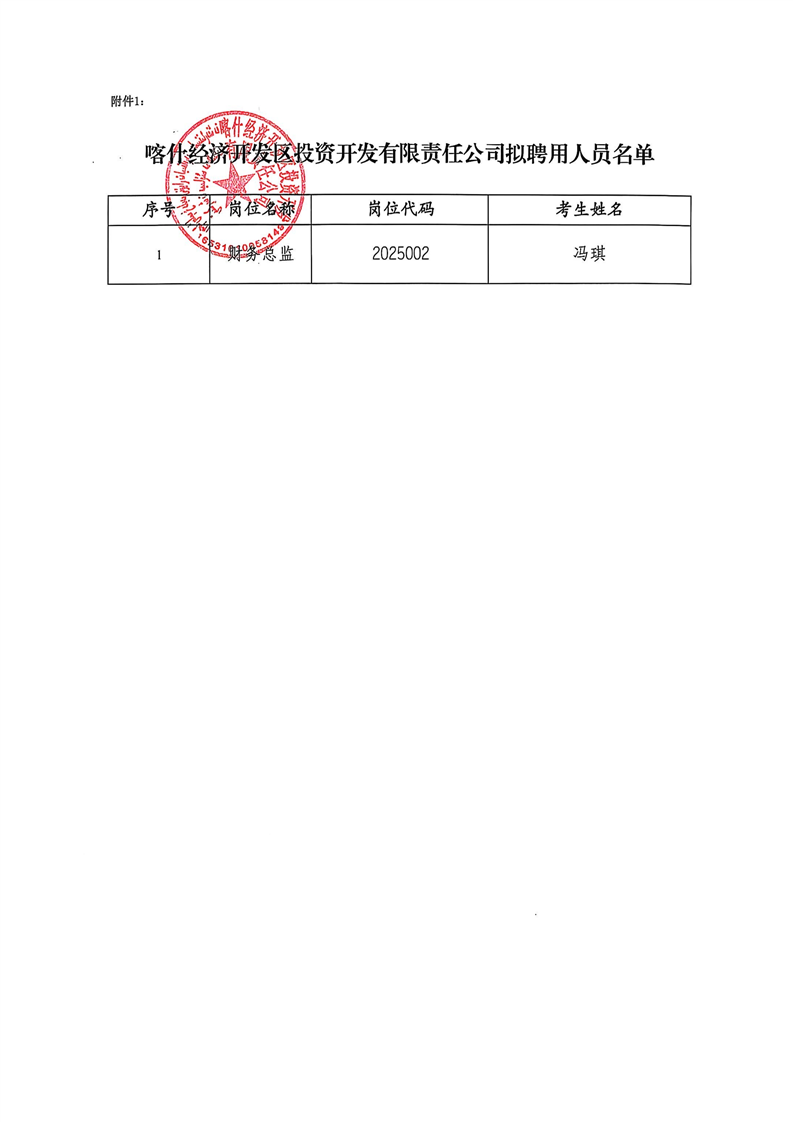 喀什经济开发区投资开发有限责任公司拟聘用工作人员公示