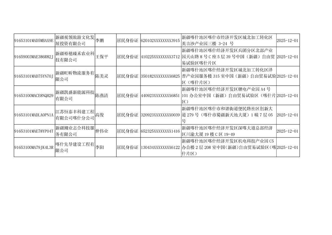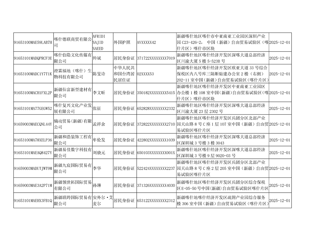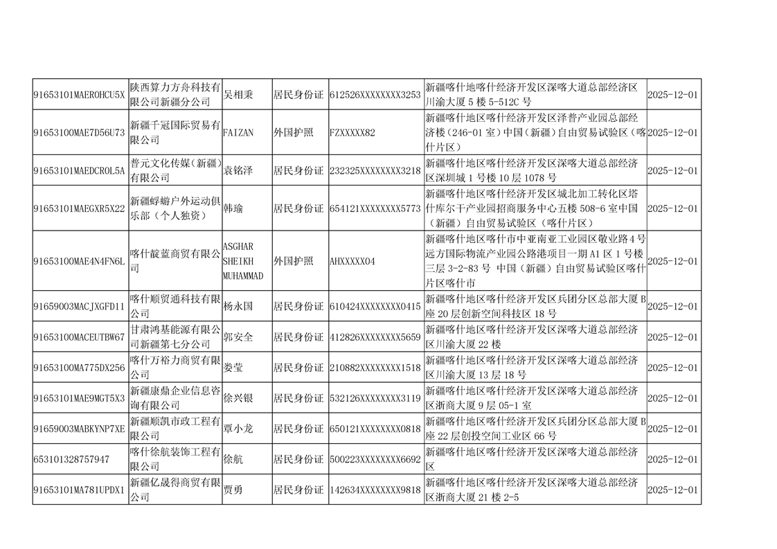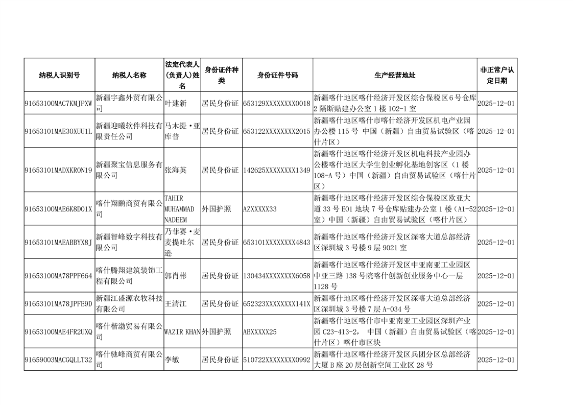国家税务总局喀什经济开发区税务局2025年12月非正常户公告