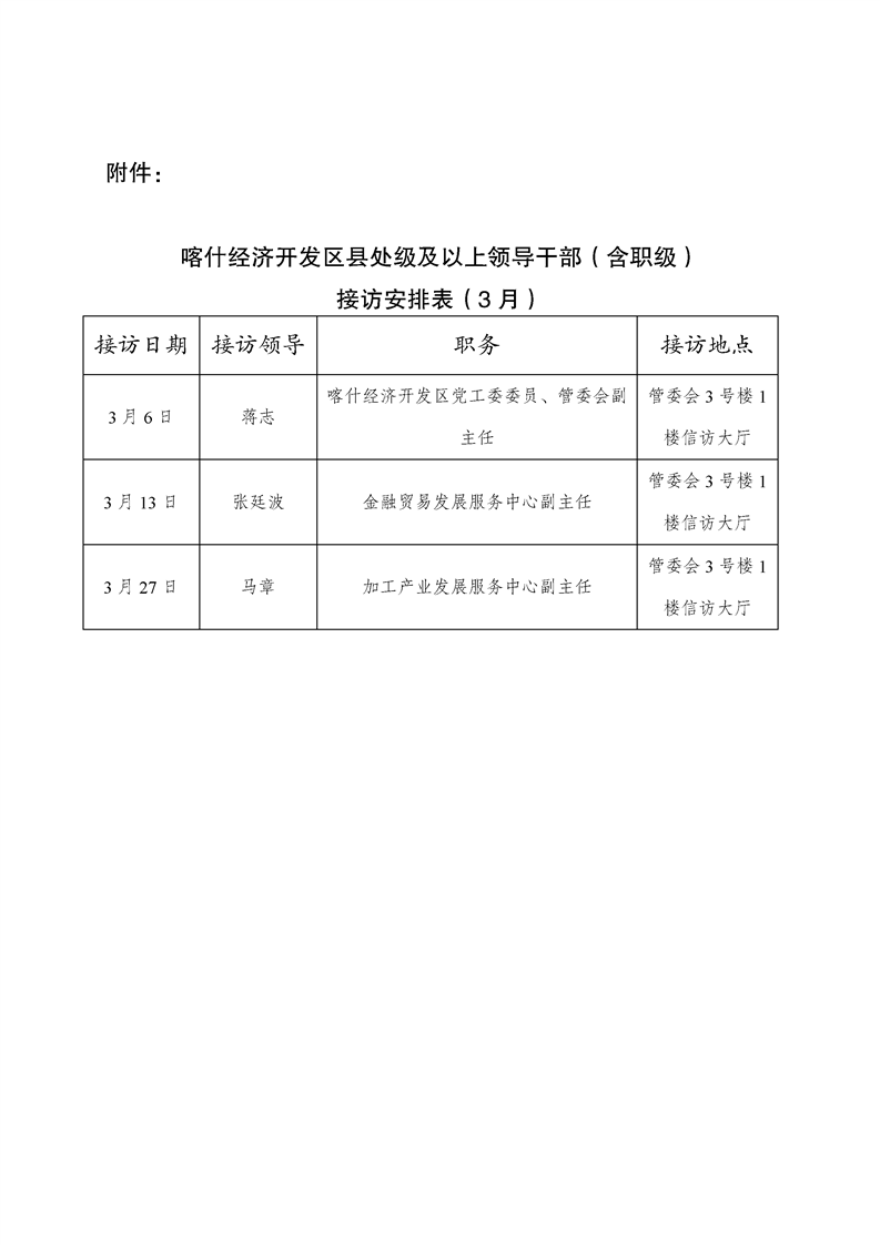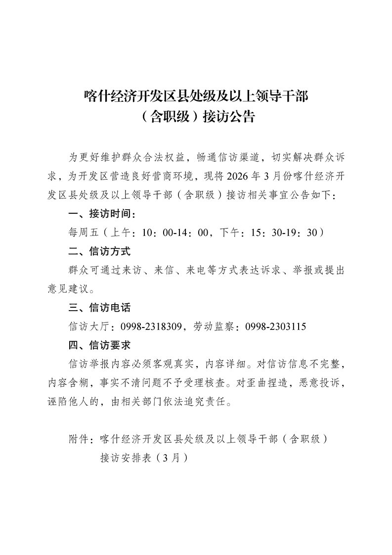 喀什经济开发区县处级及以上领导干部(含职级)接访公告