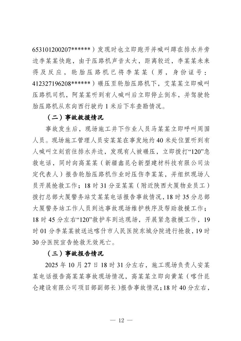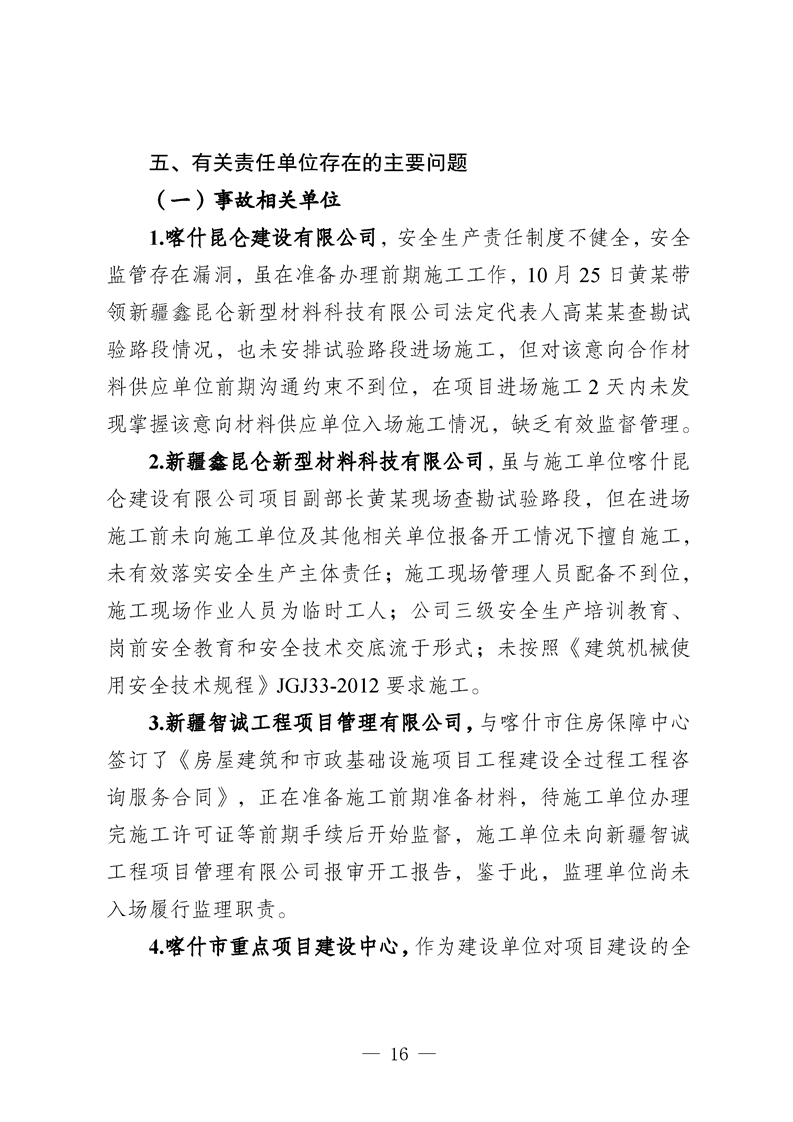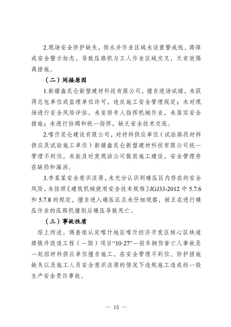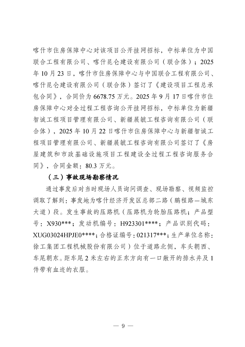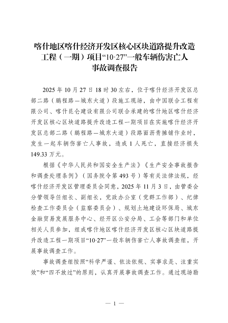喀什地区喀什经济开发区核心区块道路提升改造工程(一期)项目“10·27”一般车辆伤害亡人事故调查报告