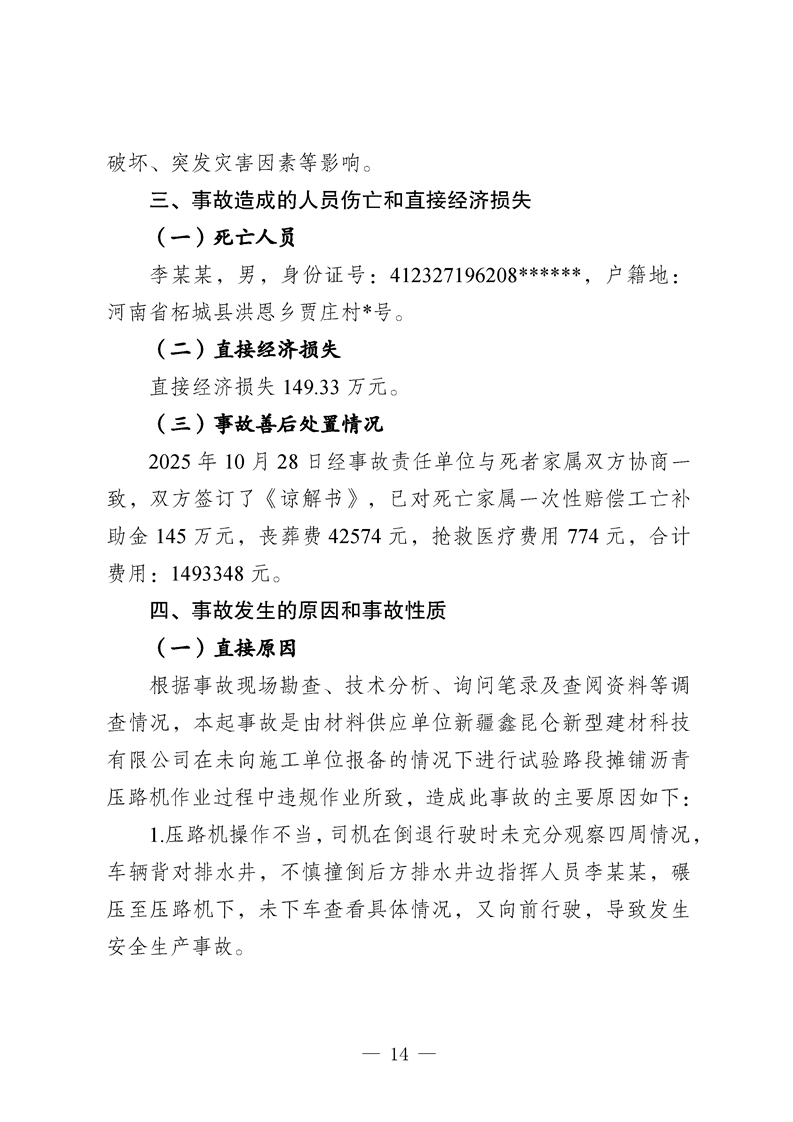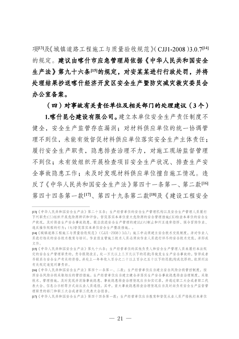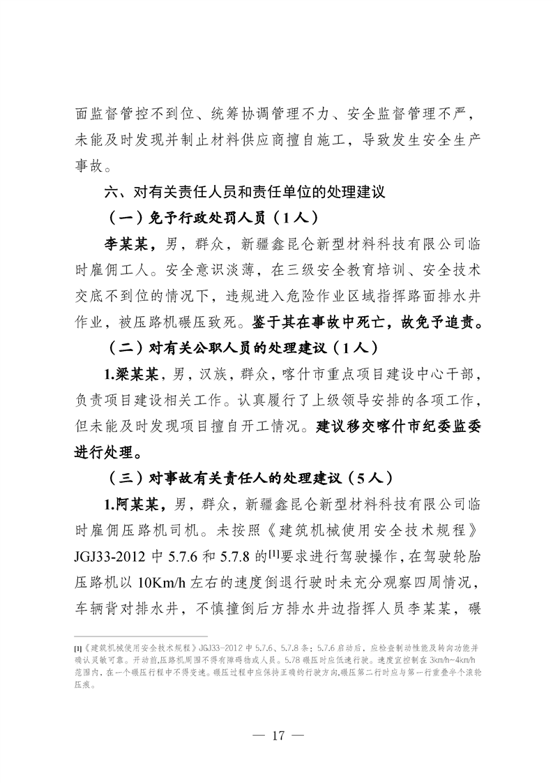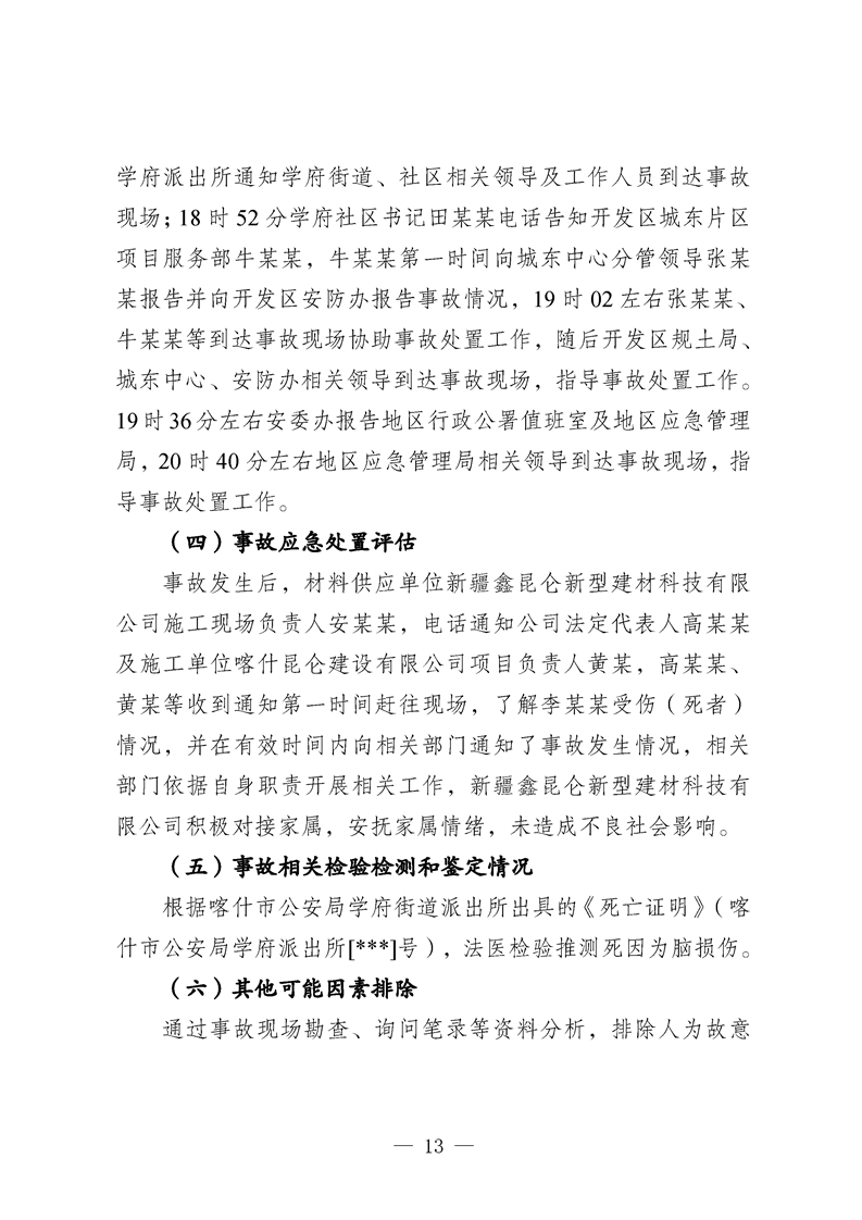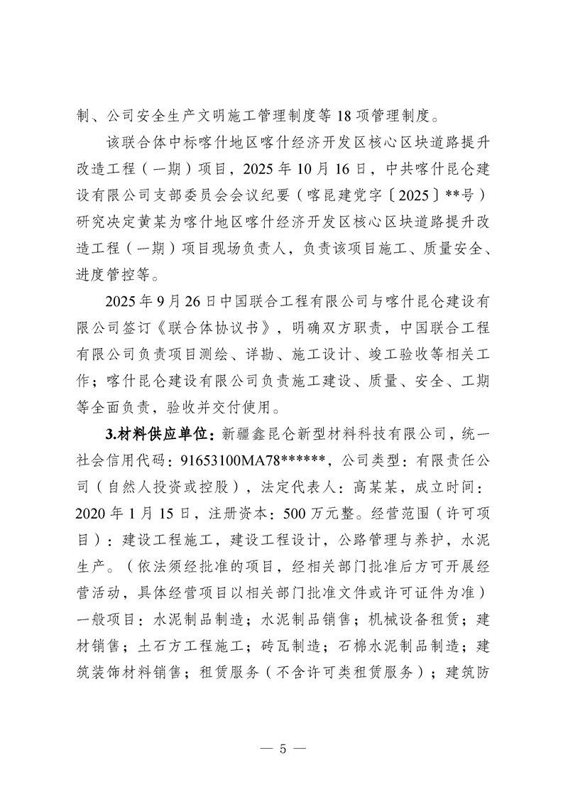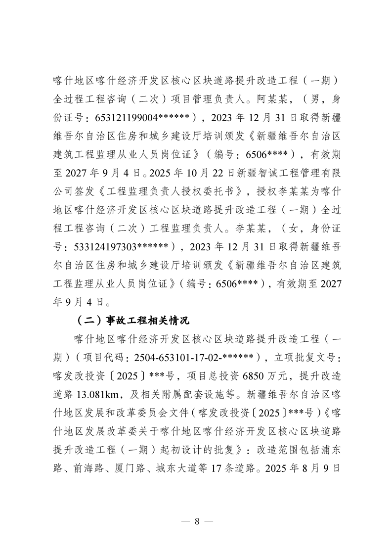 喀什地区喀什经济开发区核心区块道路提升改造工程(一期)项目“10·27”一般车辆伤害亡人事故调查报告