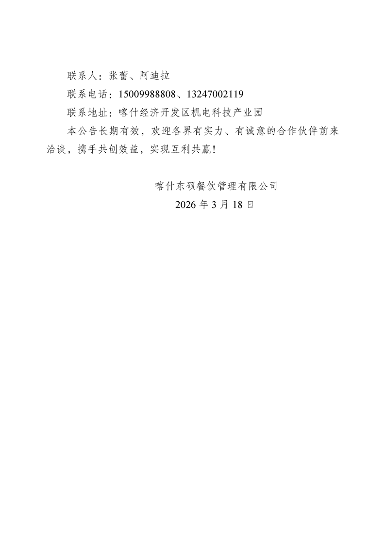 喀什东硕餐饮管理有限公司招商公告
