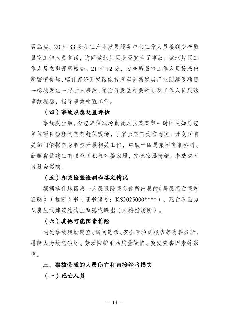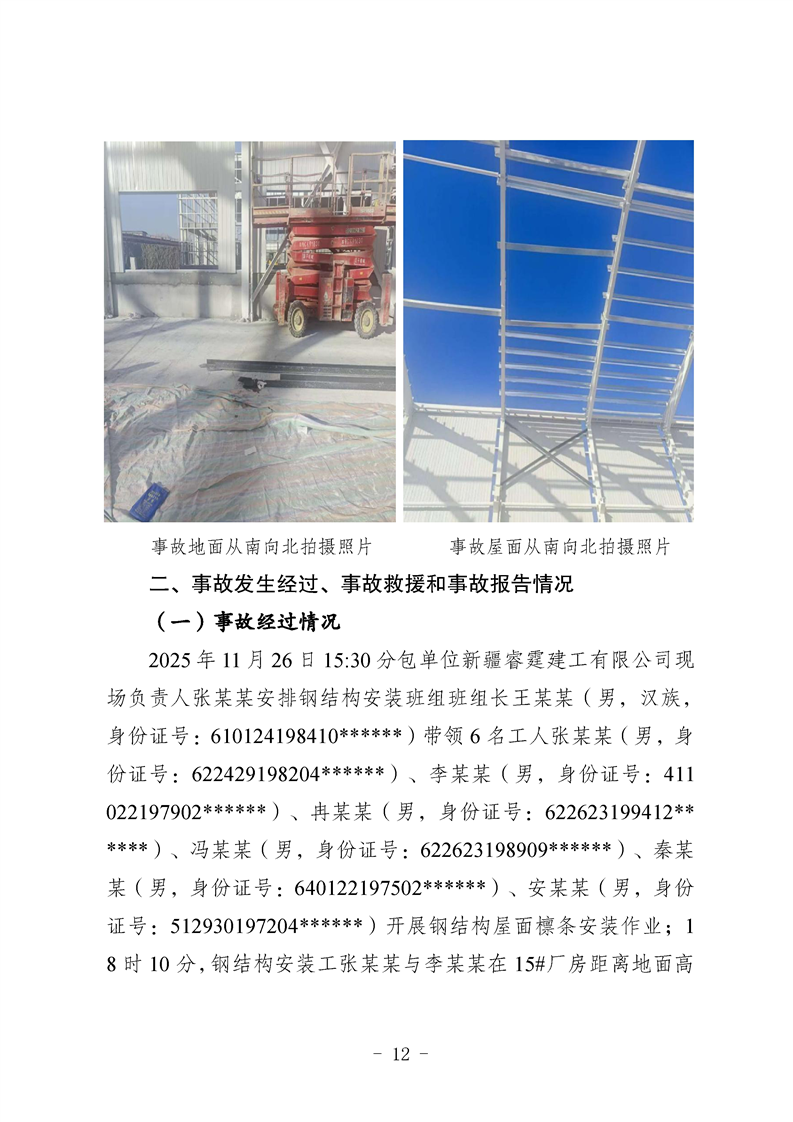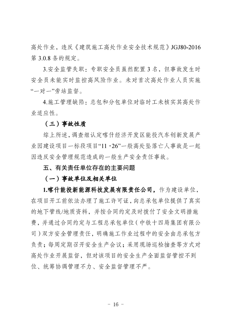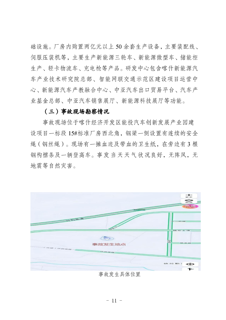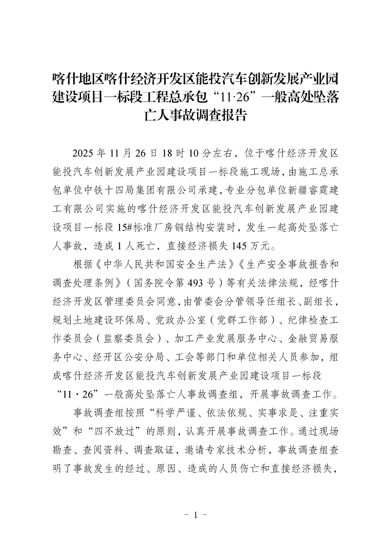 喀什经济开发区能投汽车创新发展产业园建设项目一标段“11·26”一般高处坠落亡人事故调查报告
