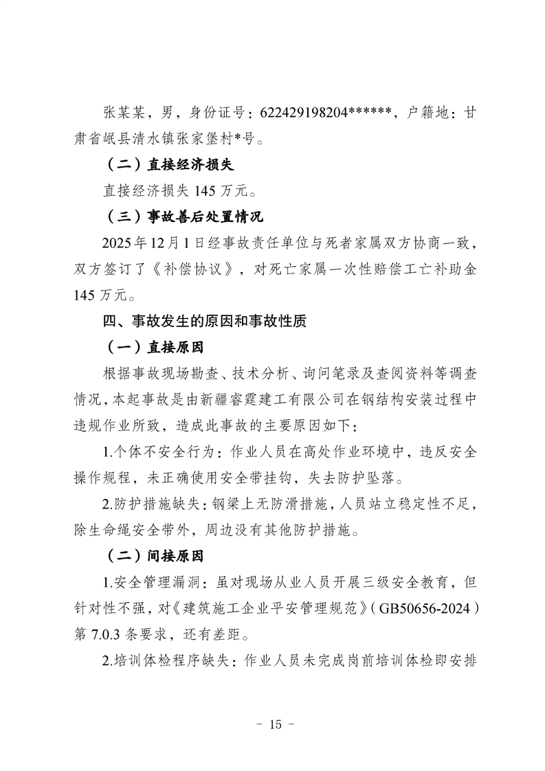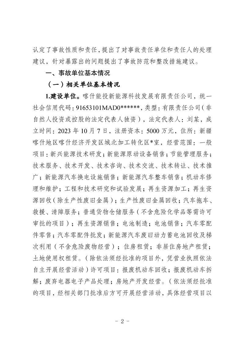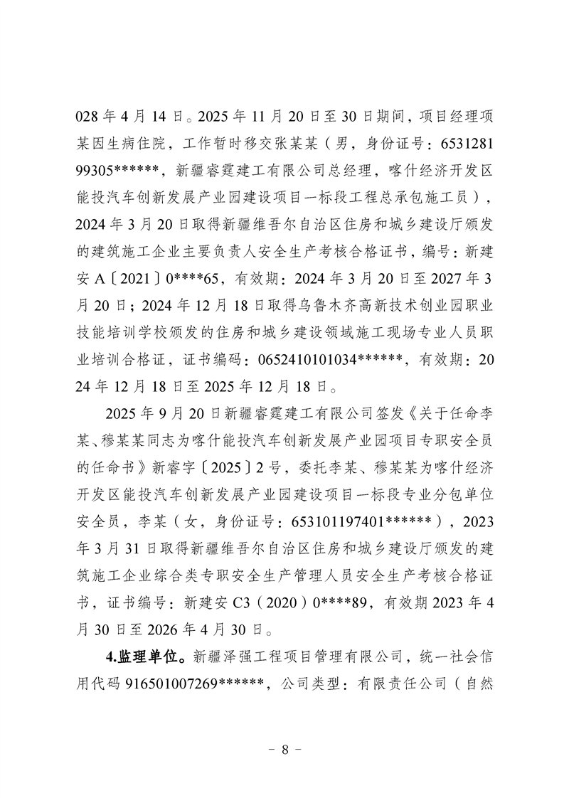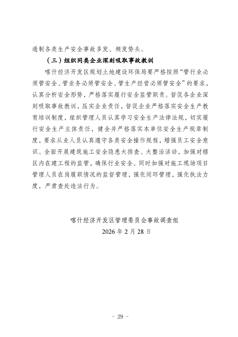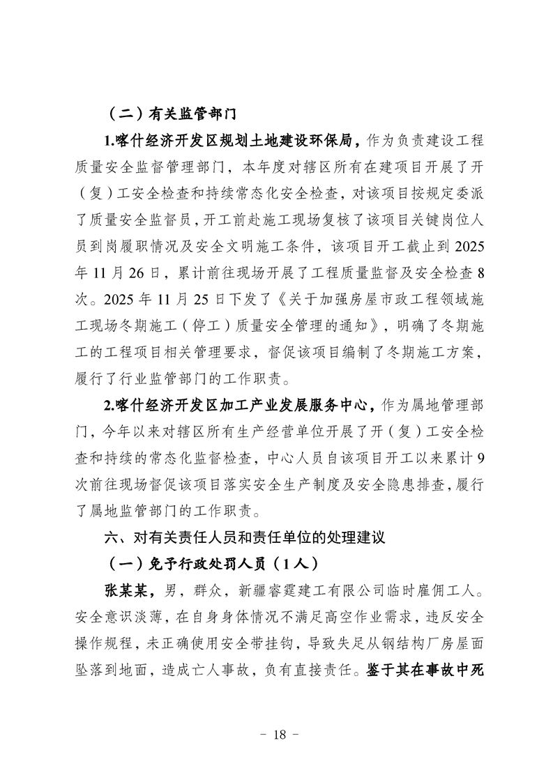 喀什经济开发区能投汽车创新发展产业园建设项目一标段“11·26”一般高处坠落亡人事故调查报告