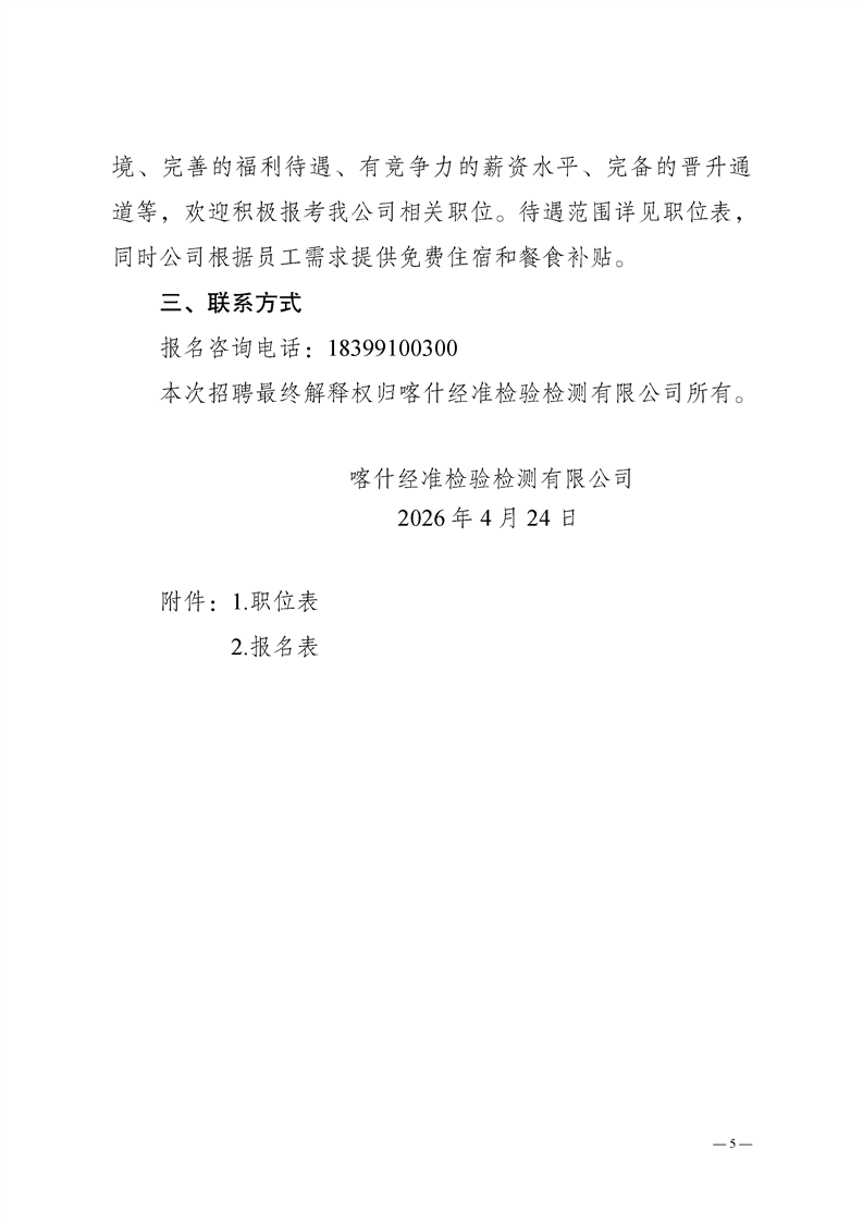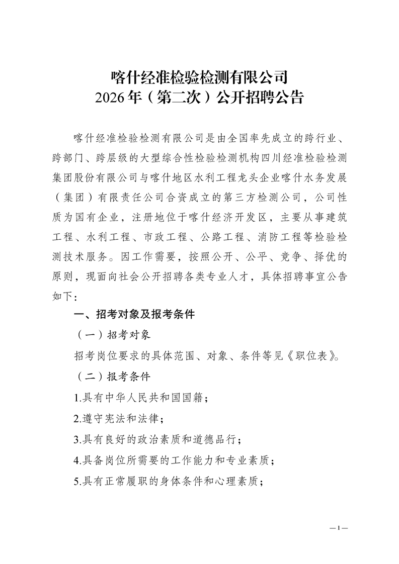 喀什经准检验检测有限公司2026年(第二次)公开招聘公告