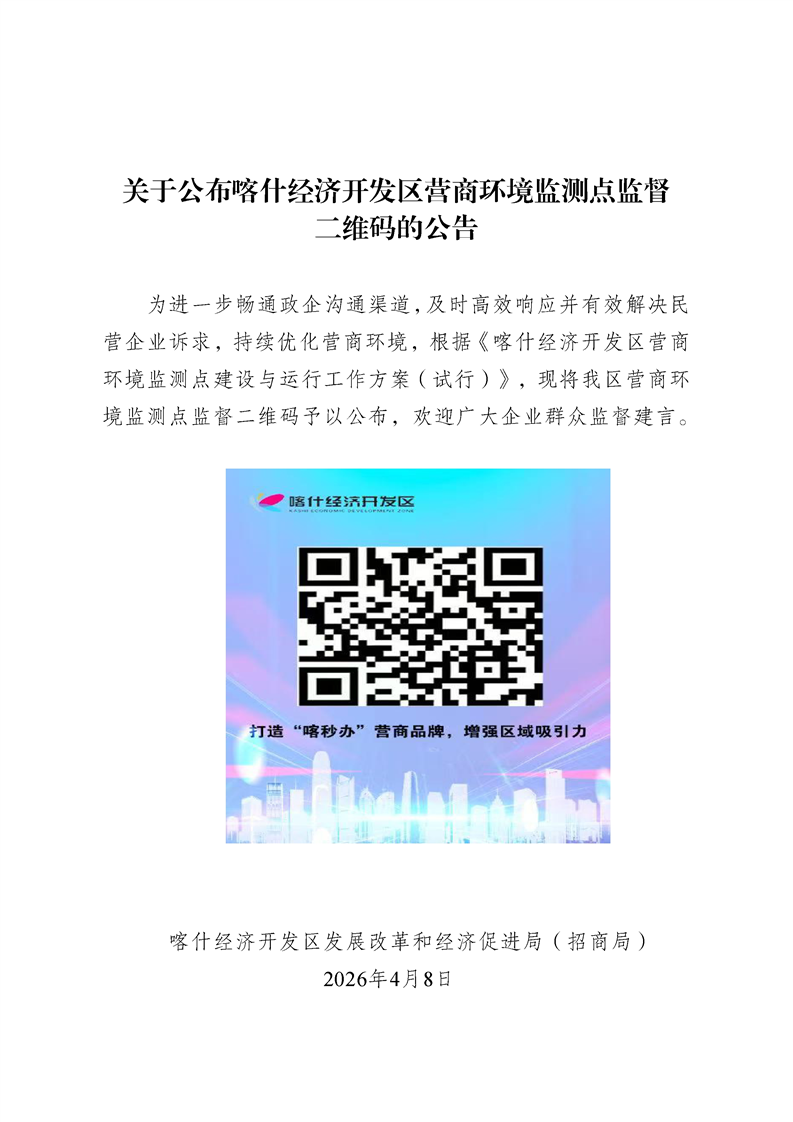 关于公布喀什经济开发区营商环境监测点监督二维码的公告